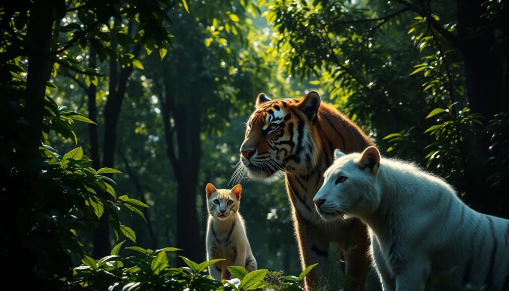 En lo profundo de la selva brasileña, donde los árboles gigantescos se alzan hasta el cielo y el río serpentea como un espejo plateado entre la vegetación, vivían muchos animales. Entre ellos, dos se destacaban por su belleza y su poder: el tigre negro, llamado Obsidian, y el venado blanco, llamado Albor.